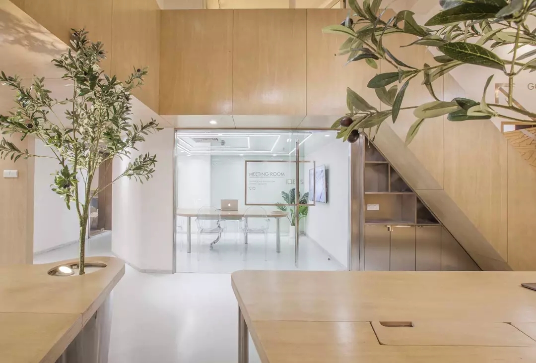 該項目位于上海市閔行區(qū)七寶萬科國際;我們希望工作室足夠的輕松、溫性、創(chuàng)意,于是通過顯性與隱性的符號對我們的目標進行構建;空間用了大量溫暖的木色,并組成木質的空間體塊,這些體塊以整個白色空間為背景,進行功能與空間節(jié)奏上的構筑: