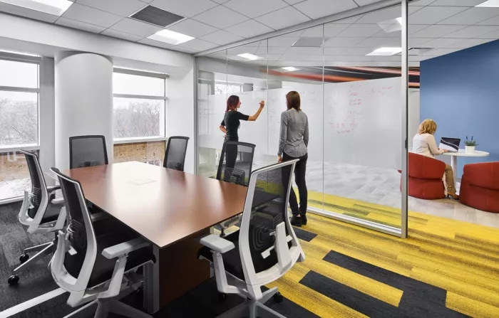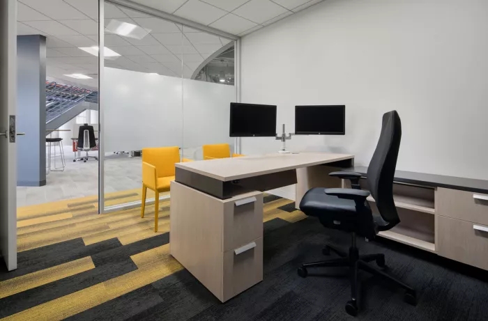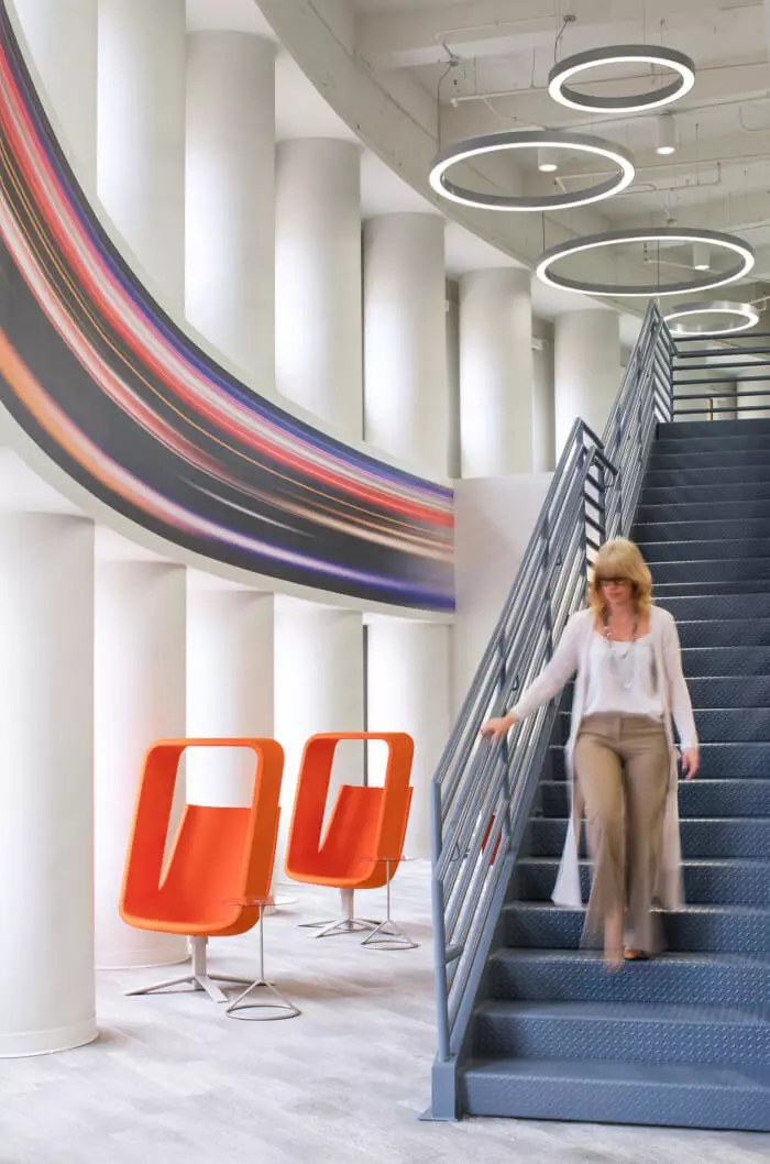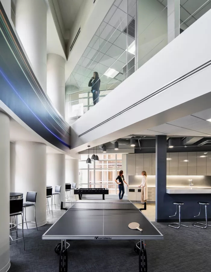 這里每一寸都為員工提供了一個支持他們成功的環(huán)境,依靠技術(shù)手段,打造鼓勵員工連接和溝通的氛圍。墻面白板、視頻會議室、各種空間和家具允許個人和團(tuán)隊在辦公室內(nèi)的完美位置進(jìn)行協(xié)作,當(dāng)然,如果想來一場即興的乒乓球比賽也未嘗不可。