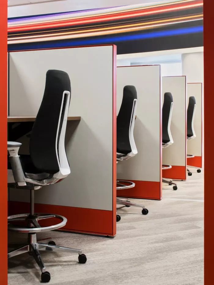 在一個時尚、開放的空間中鼓勵合作會產(chǎn)生驚人的驚喜,這些驚喜可以讓同事們在一天中自然而自然地互動。提供了大量具有住宅感覺的聚會場所,這些場景可促進(jìn)員工們的社交關(guān)系,共享工作站兼顧了靈活和聚焦的工作需要,而重要的是法拉利和蘭博基尼等豪華汽車品牌的主要皮革供應(yīng)商--Haworth Collection家具的引入,把空間和文化整合成完美的閉環(huán)。