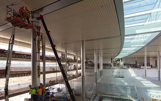 施工中的新蘋果總部,看起來(lái)確實(shí)有高天棚的開放式空間