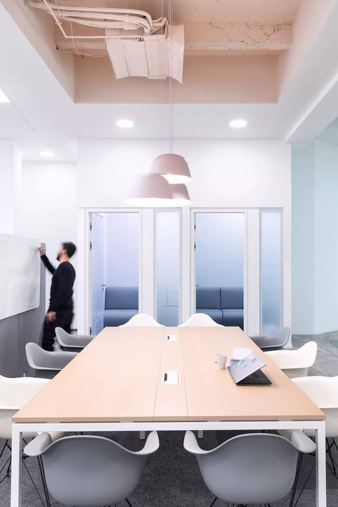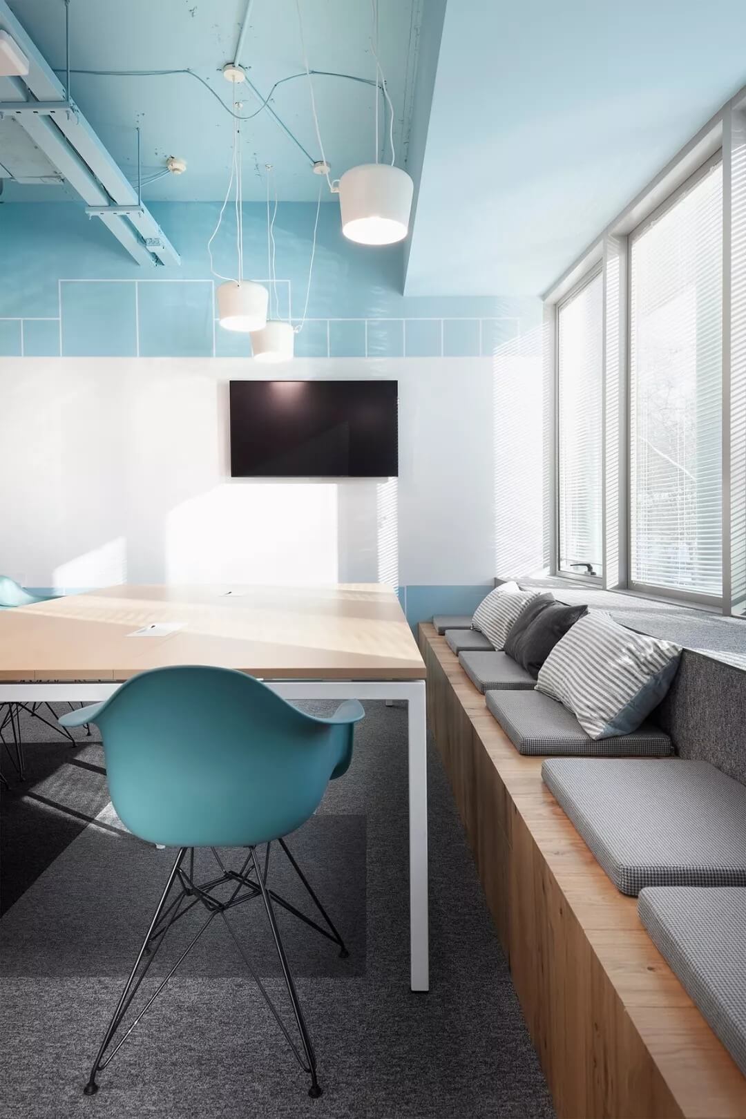 “位于保加利亞三層樓的新金融時報辦公樓,是首都索非亞最負盛名的地區(qū)。當(dāng)Cache atelier的建筑師受委托設(shè)計FT的新創(chuàng)意空間時,他們想創(chuàng)造一個年輕的靈魂空間,但又不失平靜輕松的舒適感。