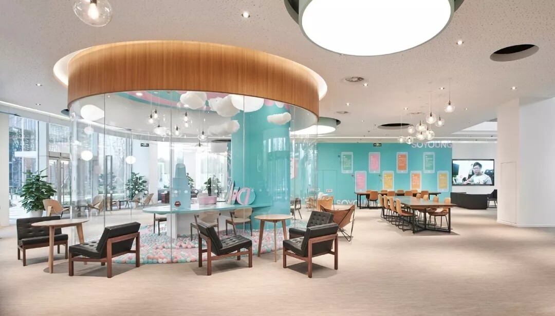 美麗生活館,開拓了新的辦公空間接待區(qū)域使用模式,它融合新氧接待,面試,對外文化展示,咖啡社交等多元化功能,不僅僅是新氧人的前廳,更是對外開放,接納周邊其他企業(yè)及社會(huì)人員在此休憩,商務(wù)洽談的公共空間,充分彰顯了新氧開放包容,活力自信的社交屬性。