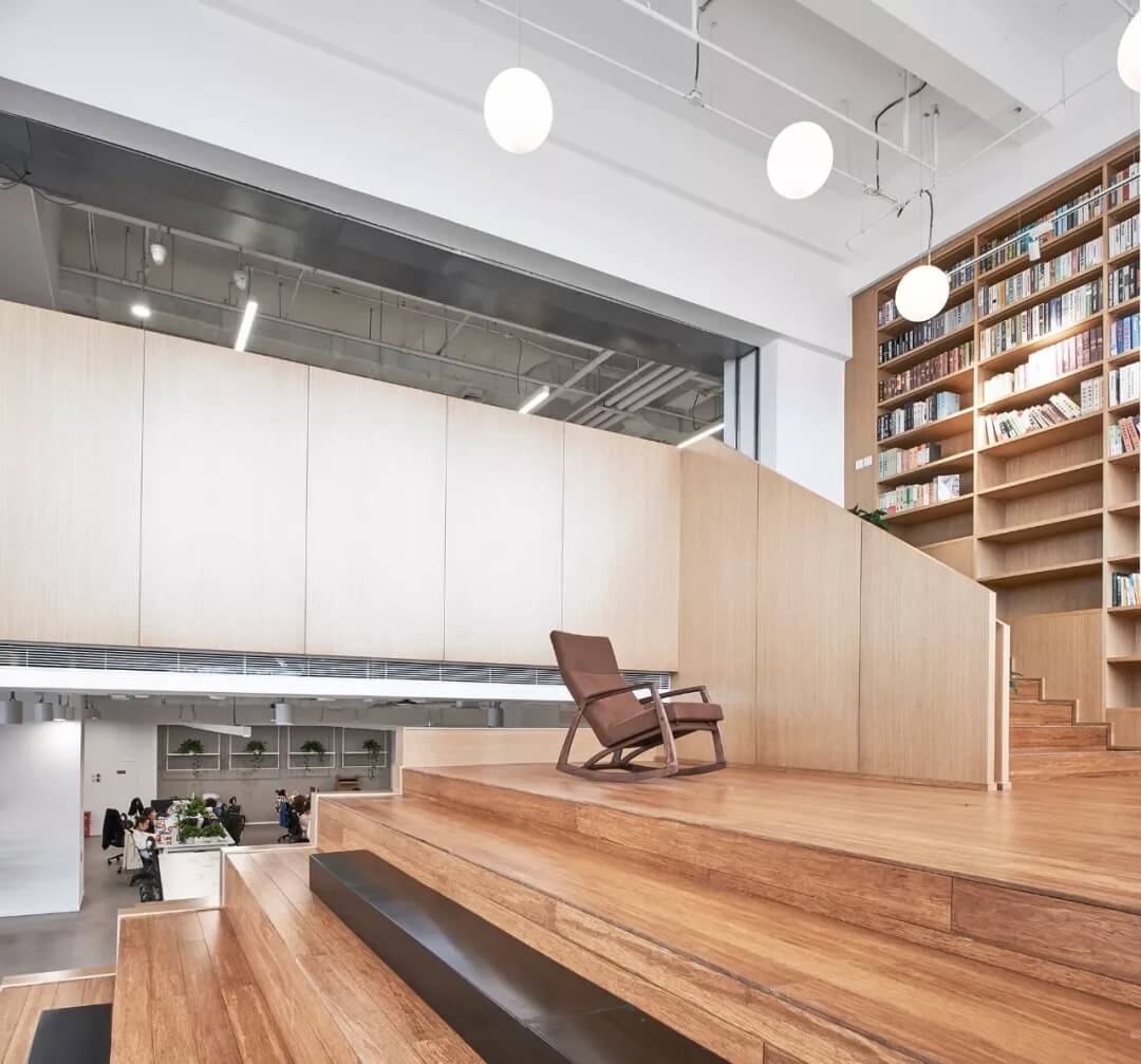 美不止于外在,更追求內(nèi)心。8-9層是新氧心靈之約—圖書閱讀區(qū)。木飾面板大樓梯,高懸掛的裝飾燈,營造出安靜舒適的閱讀氛圍,同時(shí)也可以作為小型沙龍或讀書分享活動(dòng)場所。