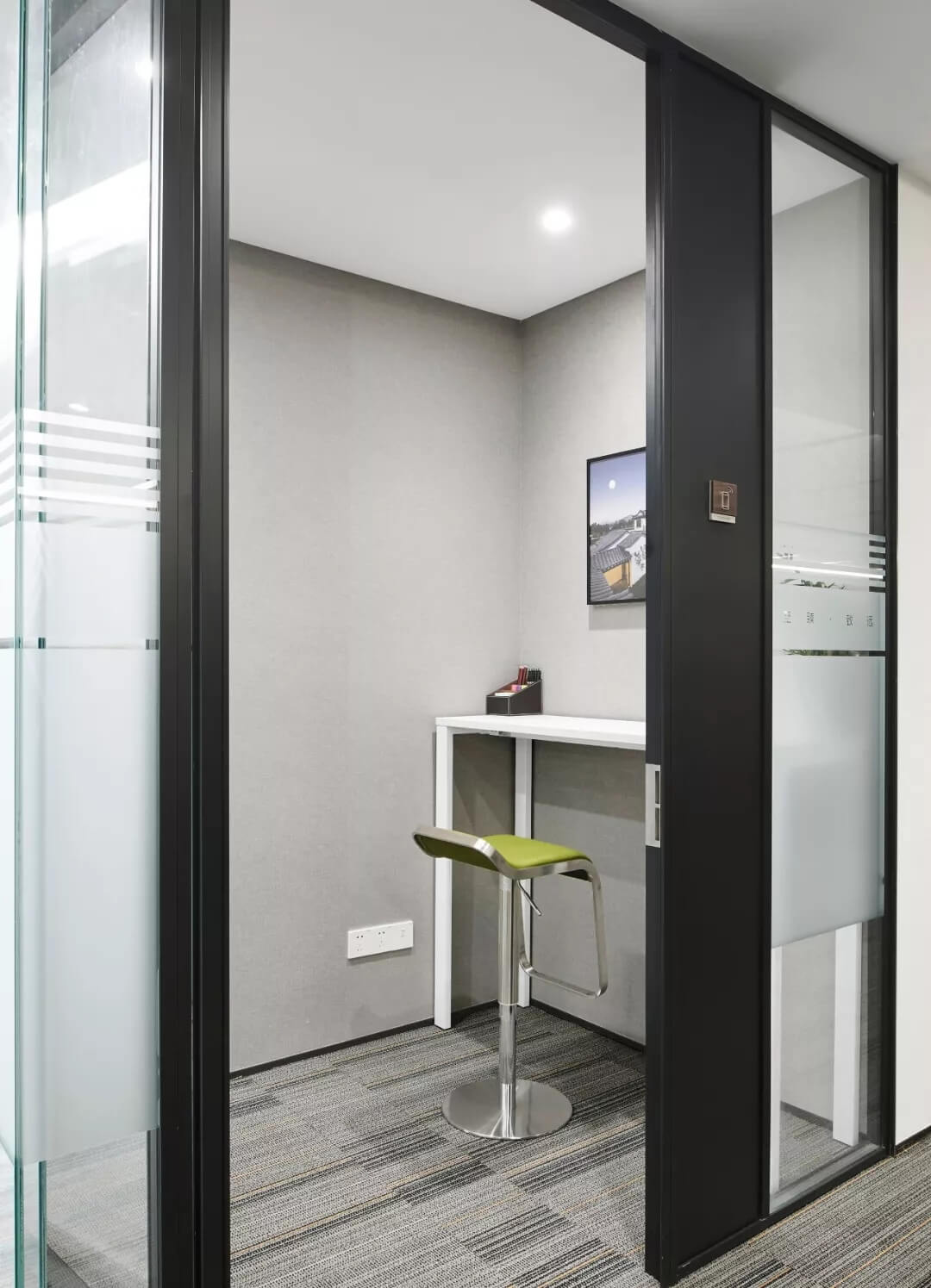 設(shè)計(jì)師綜合融創(chuàng)的不同會議使用訴求以及原建筑結(jié)構(gòu),在空間布局上,打造核心筒混合會議帶,不同大小、不同形式的會議空間嵌套在每層開放辦公區(qū)的不同位置,滿足多元化會議需求;卡座,開敞洽談區(qū),休閑洽談區(qū)滿足互動交流,頭腦風(fēng)暴式會議需求。多層次多功能的交流會議由智能系統(tǒng)高效管理,體現(xiàn)融創(chuàng)開放、包容的企業(yè)文化。