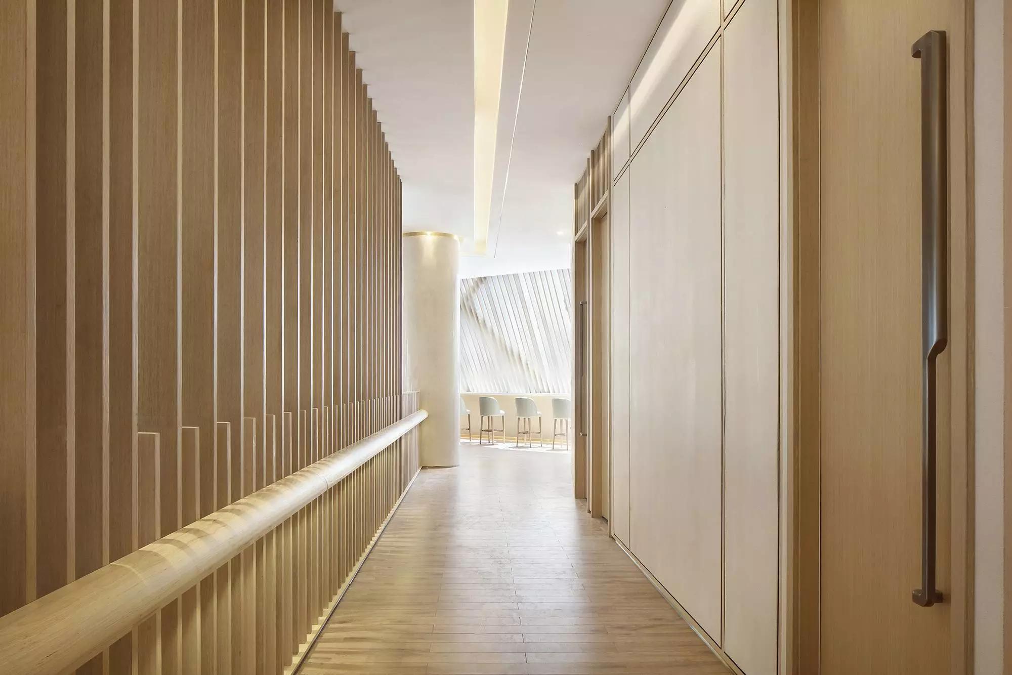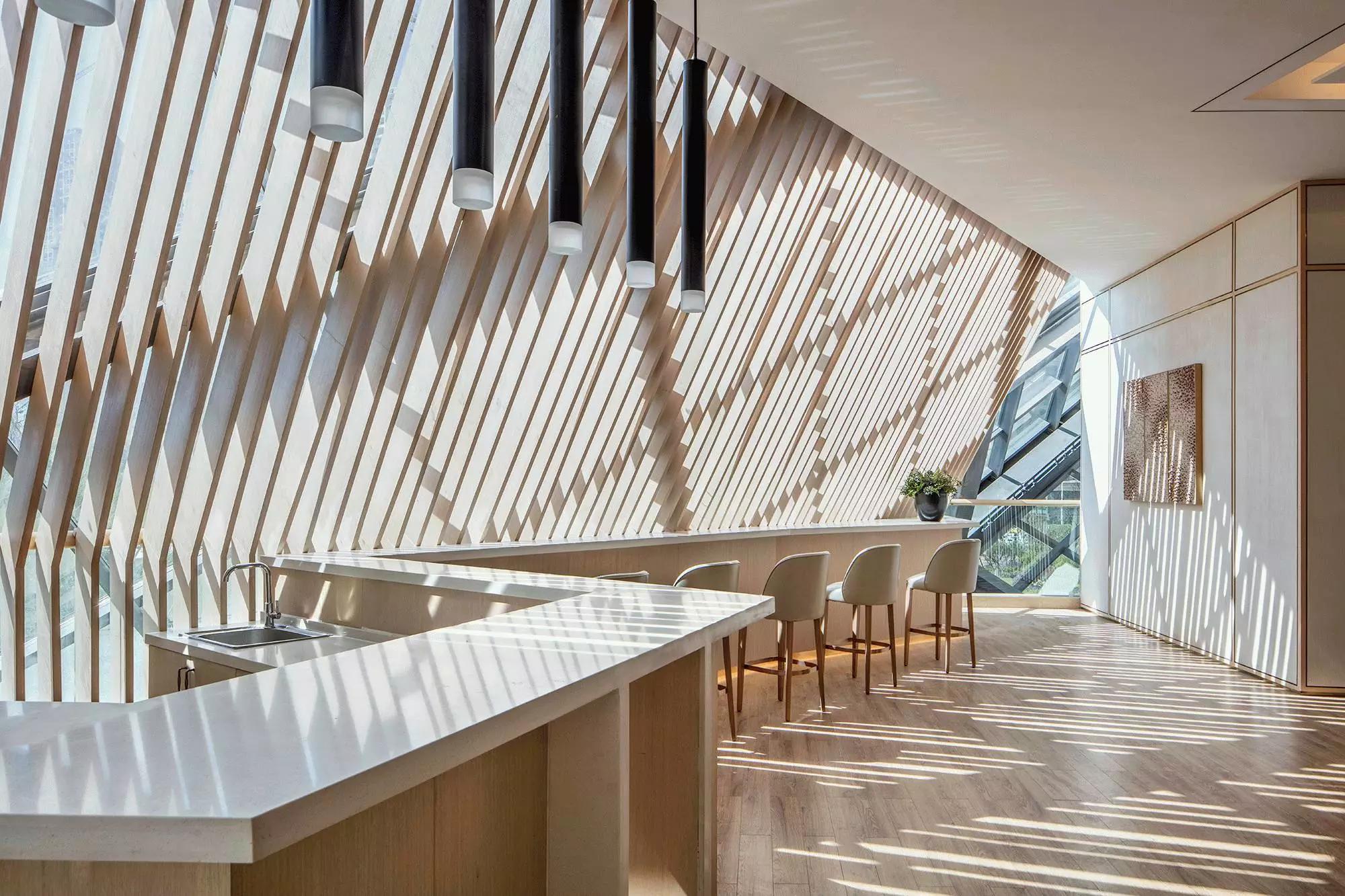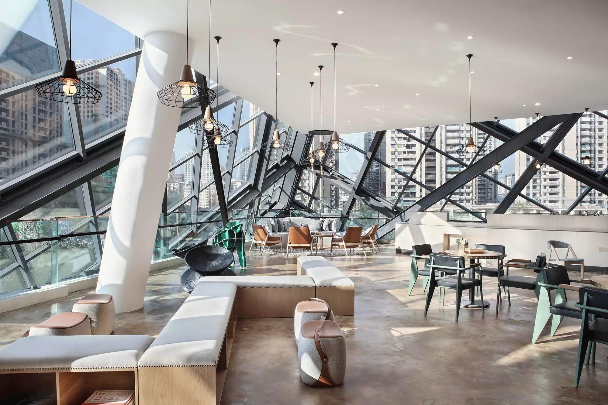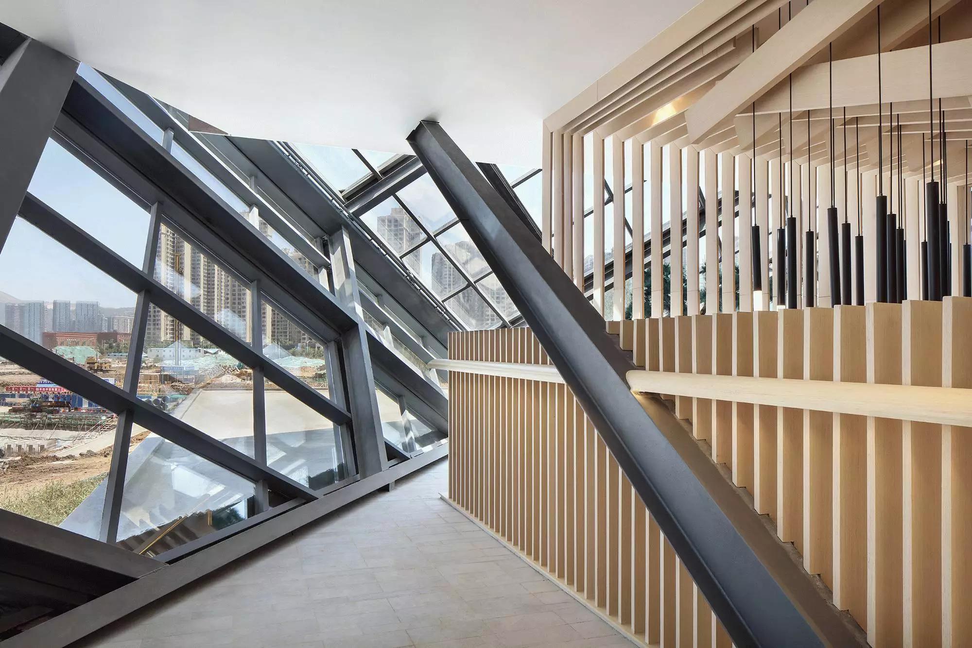 項目原屬昆明聯(lián)想科技城,后由融創(chuàng)地產(chǎn)接盤,他們希望將該建筑打造成為集辦公、商業(yè)、展示等多元化為一體的空間,并使其成為昆明新的城市地標建筑。接手本案的主創(chuàng)設計師是默存設計的季青濤,作為具有建筑師背景的主創(chuàng)設計師,從建筑空間的思維從事空間設計便成為一種必然。在原有“盒子”空間的內(nèi)部,設計師以木結(jié)構(gòu)對空間進行了重組和分割。