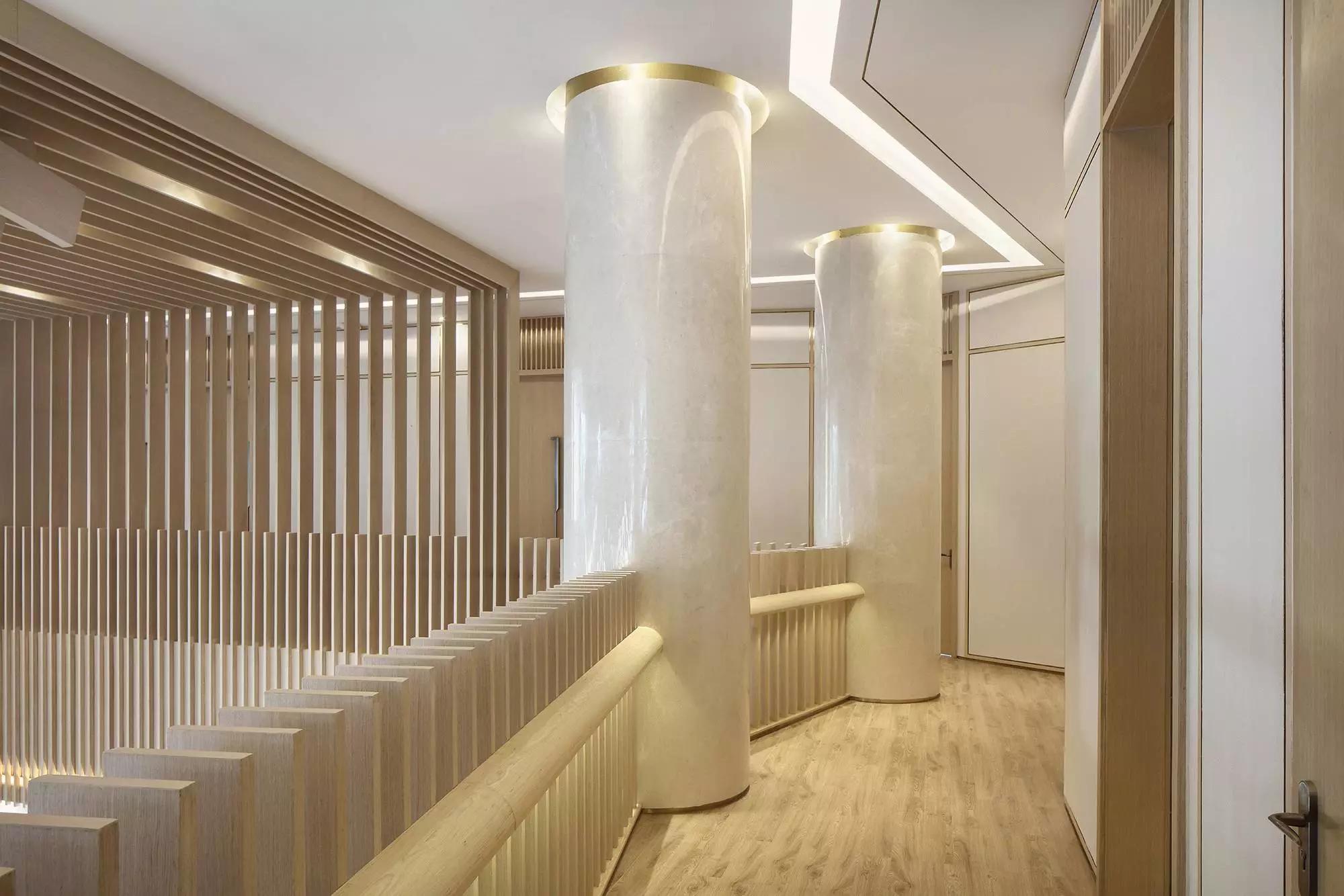 這種處理方式,仿佛原有建筑內(nèi)又套了一個建筑,觀者從外入內(nèi)將面臨到巨大的空間反差。光影從結(jié)構(gòu)衍生出來,也是結(jié)構(gòu)的一部分。采用最簡單的平行結(jié)構(gòu),光影作用下卻出現(xiàn)了復雜的韻律感受,并根據(jù)光線移動在一天內(nèi)發(fā)生轉(zhuǎn)變。