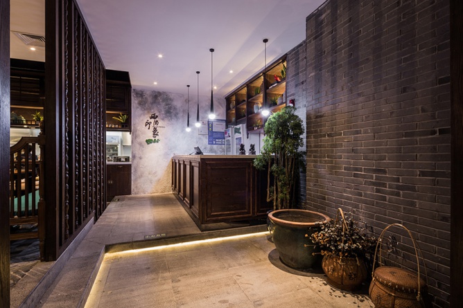 從遠處望過來,一座江南小院落入眼中,白墻青瓦小橋流水,以清靈的體態(tài),展示萬般風韻。 經(jīng)典的江南建筑別有恬靜內(nèi)秀的韻味,而江南院落給人一種,優(yōu)雅、寧靜、親切的感覺,正是生活在浮躁社會中的我們所缺失的,所以在本案中設(shè)計師以江南的小院的作為此次設(shè)計主題。無論是舊時還是依稀,江南水鄉(xiāng)的一山一水一物,均是文人墨客筆下的絕妙勝景,盡顯江南的風情。而這次,跟緊我的腳步來領(lǐng)略屬于江南的意境。 整個店面的平面布局是根據(jù)江南小院建筑布局來延伸切入,以格局的形式將餐廳分成了院入口,陽臺,閨房等五大板塊。江南建筑,高低錯落,古樸幽靜,含蓄內(nèi)斂。 有的枕山面水,有的面河而居,有的夾河而造,清澈的河水,輕盈的小橋,窄窄的街巷,深深的庭院,凝練成江南水鄉(xiāng)傳統(tǒng)民居的典型意境。 為了把這意境體現(xiàn)的淋漓盡致,設(shè)計師將入口處抬高,錯落有致,營造出“曲徑通幽處,禪房花木深”的氛圍,令人漸入佳境,而這對空間的分割,避免平鋪直敘的蒼白,也是為餐廳增添了幾分寧靜。 |
